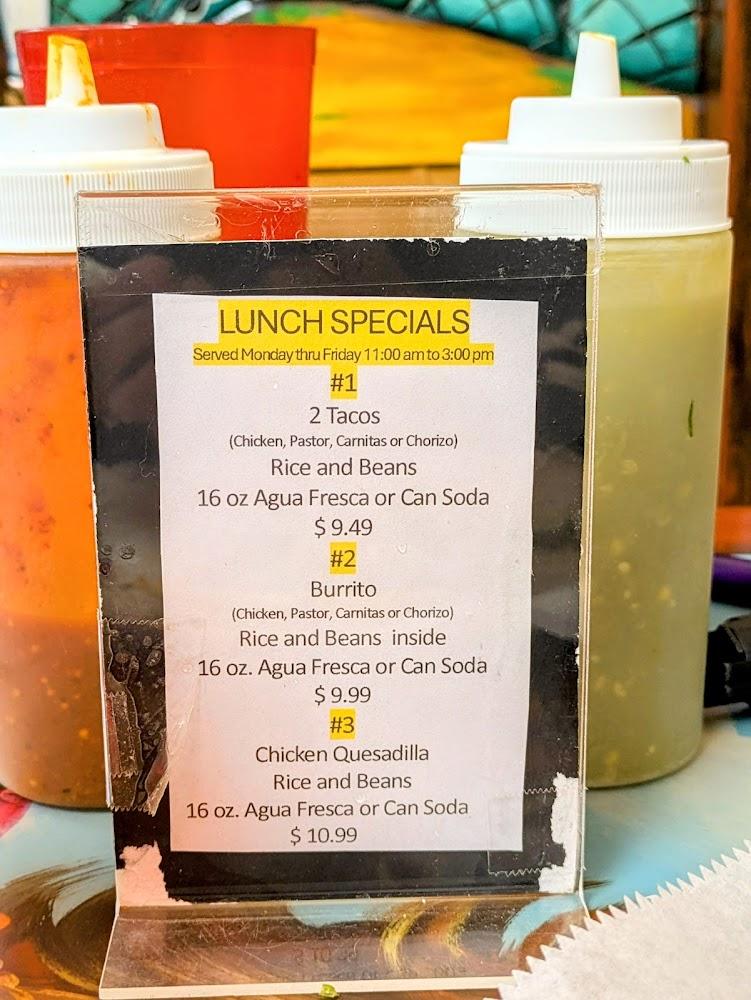 Breakfast is served all day, with dishes that highlight Mexican culinary traditions. Whether a hearty steak and eggs platter or lighter options like huevos rancheros, breakfast fans are in for a treat. Lunch specials are readily available weekdays with unbeatable prices, perfect for a quick, satisfying meal.